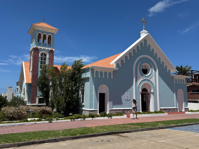 A windy, walkable day in Punta del Este: a lighthouse from 1860, the little church beside it, and the famous La Mano sculpture — plus practical tips for future cruisers on timing, money, and getting around.