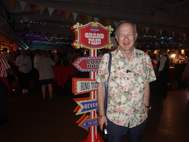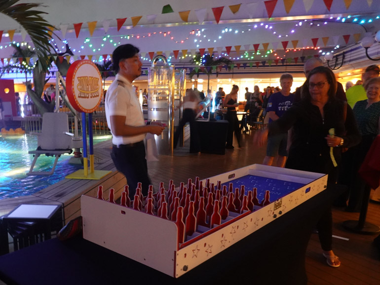 That evening, the Grand Fair took over the Lido Pool area from 8:30 to 10:00 p.m., transforming the deck into something resembling a floating county fair. Carnival-style games filled the space—corn hole, ring toss, putt-putt, ladder ball, rubber ducky draw, tin can alley, spin-to-win, and more.