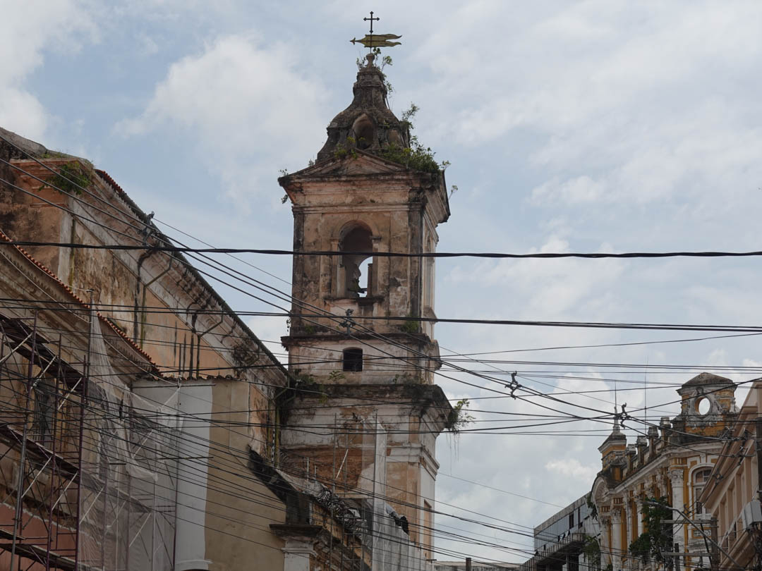 As we walked from the Bank to The Docks, we passed the Igreja de Nossa Senhora das Mercês, one of Belém’s oldest churches. Dating back to the 17th century, the church is open to visitors, though parts of the exterior are wrapped in scaffolding. Its bell tower rises above traffic, tangled wires, and everyday street life, a reminder that in Belém, history isn’t set apart or polished for display—it remains woven directly into the city’s daily rhythm.