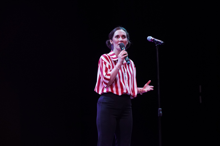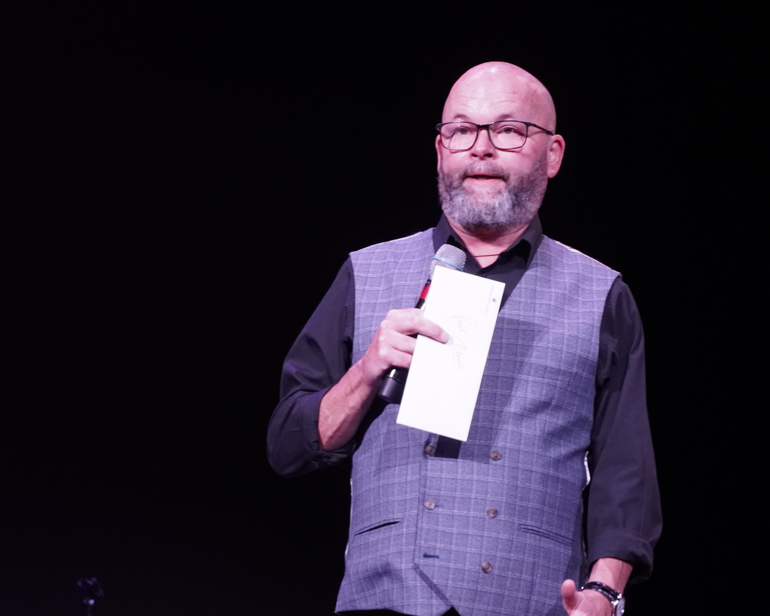 We left the fair a little before 9:00 p.m. to catch Paul Adams’ second show on the World Stage. British comedian Adams delivered an energetic set packed with playful storytelling and sharp observational humor, ranging from Paris mishaps and late-night dance floors to nightclub bouncers demanding ties and communicating with French strangers through napkin drawings.