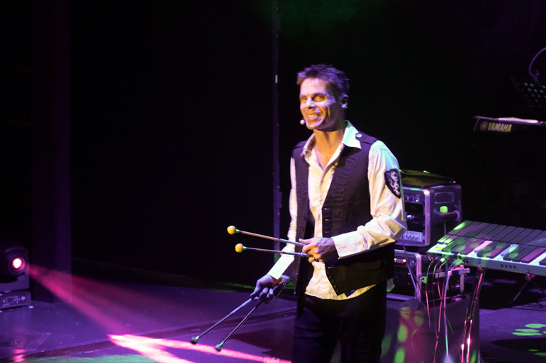 This evening’s main show featured David and Dawn Meyer, returning for their second performance of the cruise. David is an incredibly talented musician who plays a unique electronic instrument called a xythlosynth — a digital xylophone that can be played with either mallets or hands.