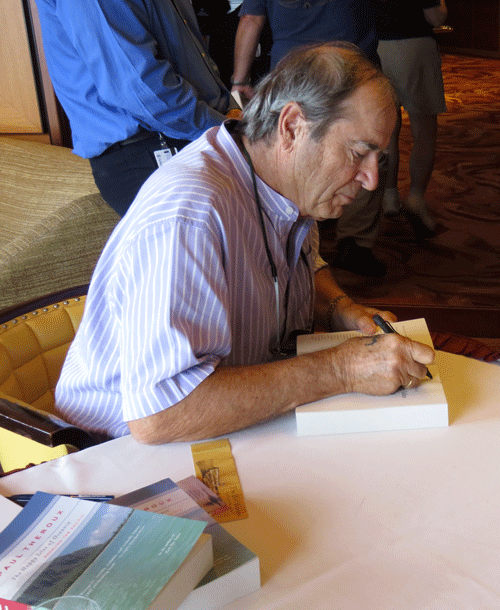 Paul Theroux offered to sign copies of his book at 1pm in the lounge across from the Ocean Bar on Deck 5. He spent 2 hours signing 375 books and the waiting time was about 45 minutes.
