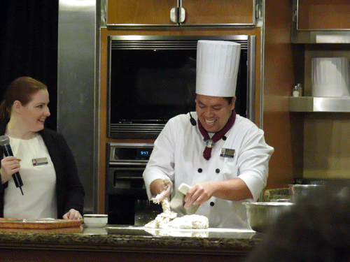 Today’s cooking demo was preparing Dutch Raisin Rolls and Onion Bread. The Amsterdam Bakers discussed the proper way to knead and prepare the dough and offered a few other tips. They had some samples already prepared that were shared at the conclusion of the show.