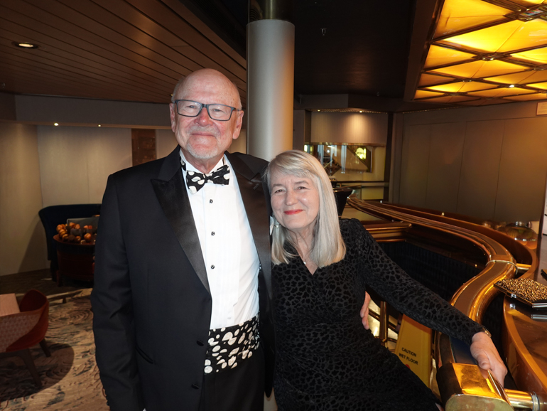 Hi Pete & Judy, so nice to see you back on a voyage. It has been several months since seeing “ The Inside Cabin “. Greatly enjoyed the posts you’ve posted last few days. I loved your tux jacket. You and Judy look so very beautiful and elegant. Hope to see you soon. Regards, Tom