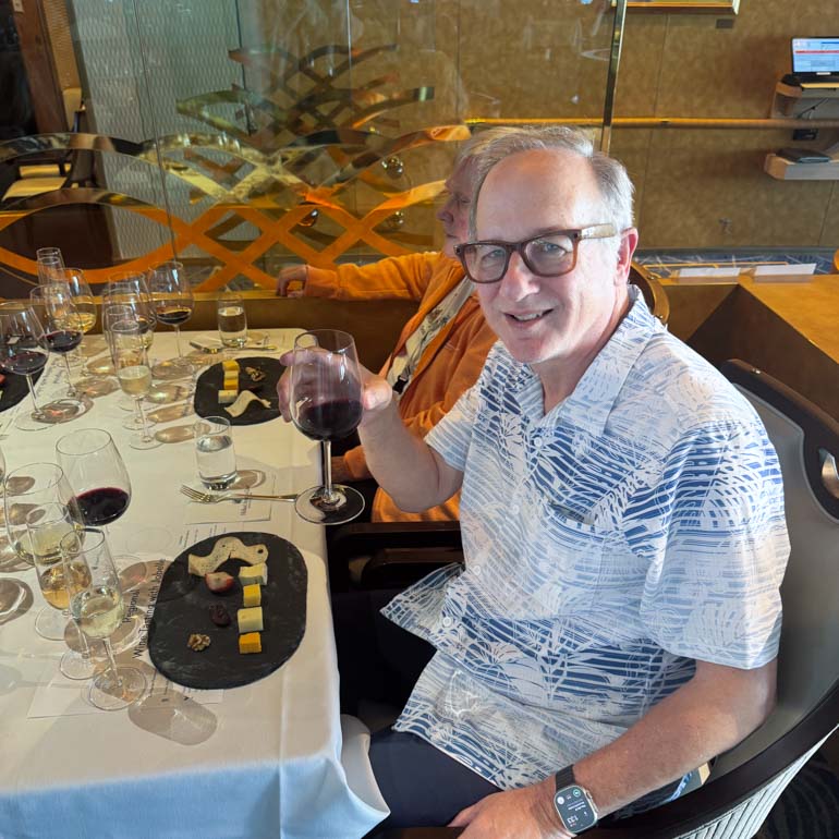 In the afternoon, 4- and 5-Star Mariners were invited to a complimentary Regional Wine Tasting hosted by Cellar Master Jobelle in the Main Dining Room on Deck 4. About 50 guests attended the session, which lasted around 45 minutes.