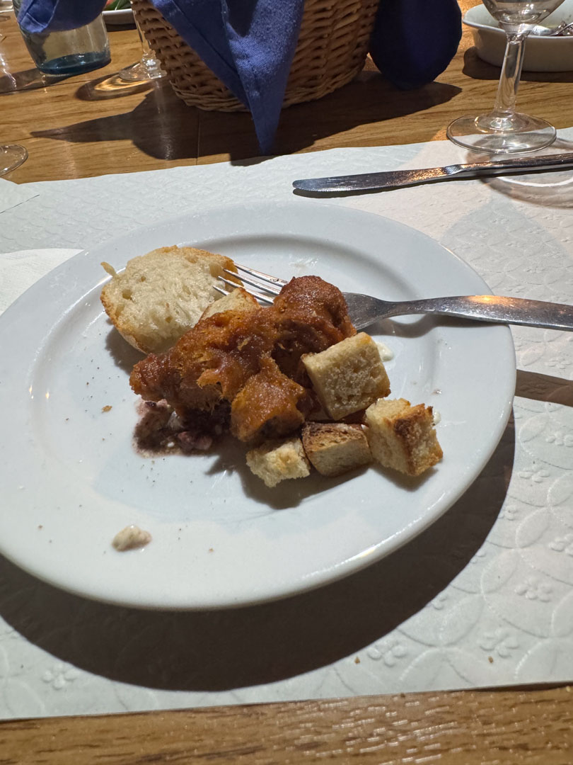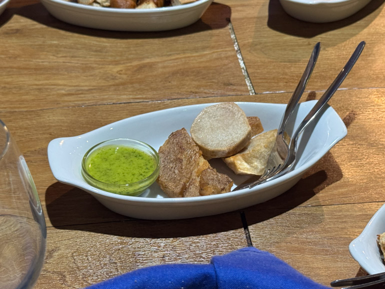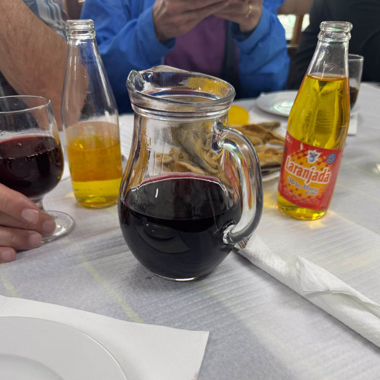 Bread baskets and a choice of local red or white wine rounded out the spread — the kind of lunch locals linger over.