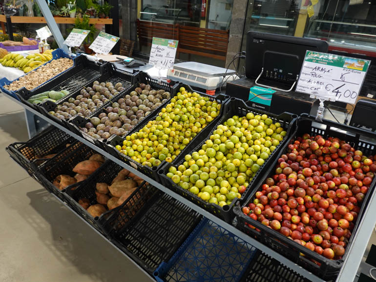Inside, the market was clean and active — mostly locals shopping. There were fruits, vegetables, eggs, dairy, and cheese. We sampled Azorean pineapple and passion fruit, both bursting with tropical flavor. Marco explained that local pineapples are greenhouse-grown and have no hard core, so they can be eaten whole.