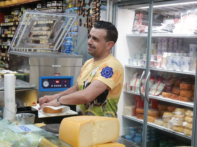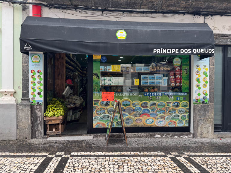Just a few minutes away, we stopped at O Príncipe dos Queijos, a compact specialty shop stacked to the ceiling with wheels of local cheese (some weighing over 20 kg). We sampled two soft varieties — creamy, fresh, and quietly tangy — a love letter to São Miguel’s dairy pastures.