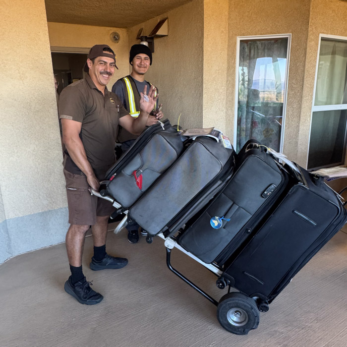 UPS guys taking our bags for Luggage Forward
