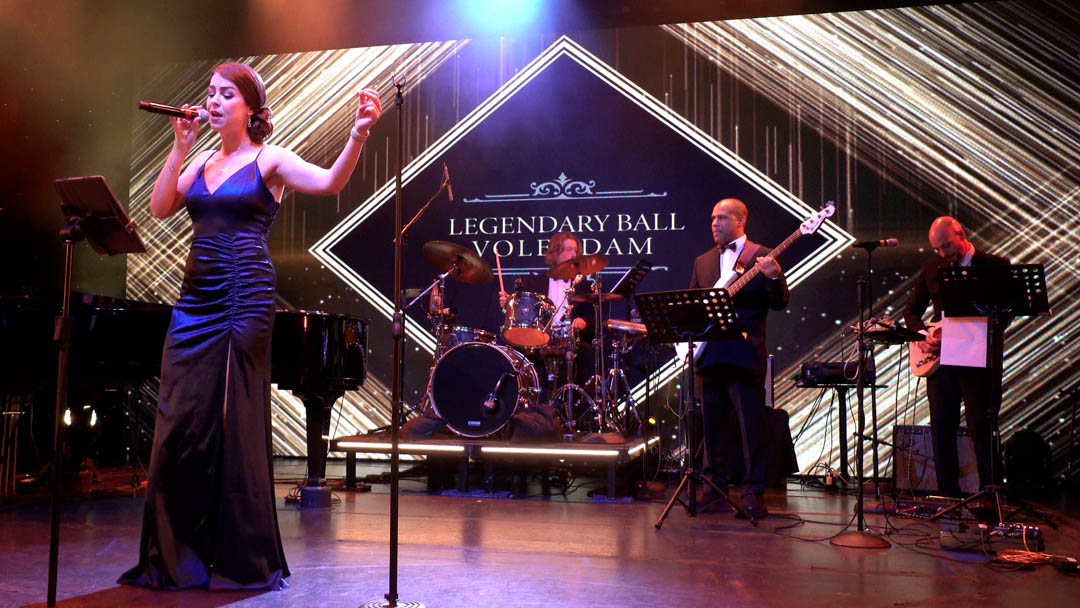 Highlights from two sea days on Volendam—Coffee Chat with Captain Frank, the elegant Volendam Ball, Meet the Artists, and a 60s tribute show