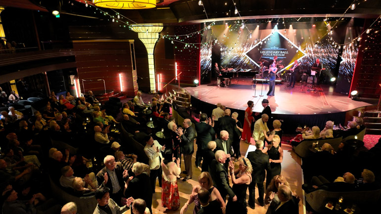 The R-class ships may be smaller, but their World Stage transforms into a true ballroom by removing the lower center seats to create a spacious dance floor, so nearly the whole ship can dance or watch from the balcony.